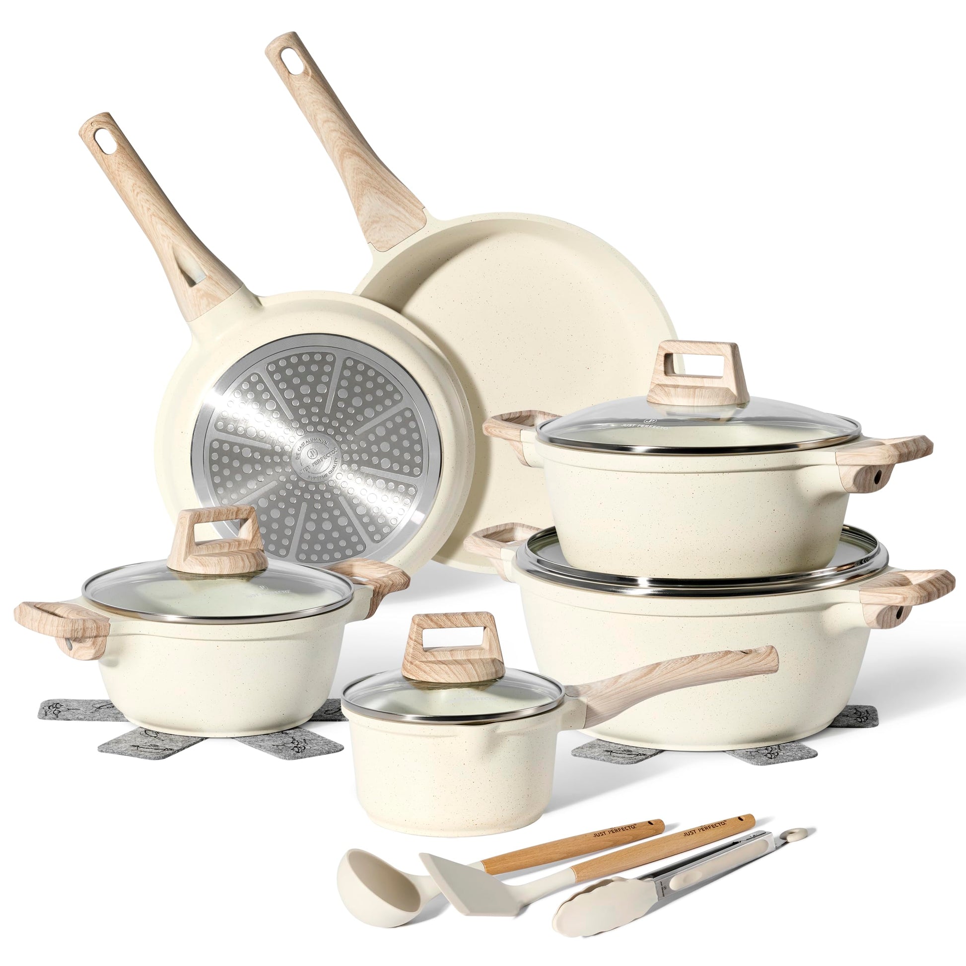 „JUST PERFECTO Topf- und Pfannenset Induktion 15-teilig Beige – ohne PTFE & PFOA, mit Deckel“